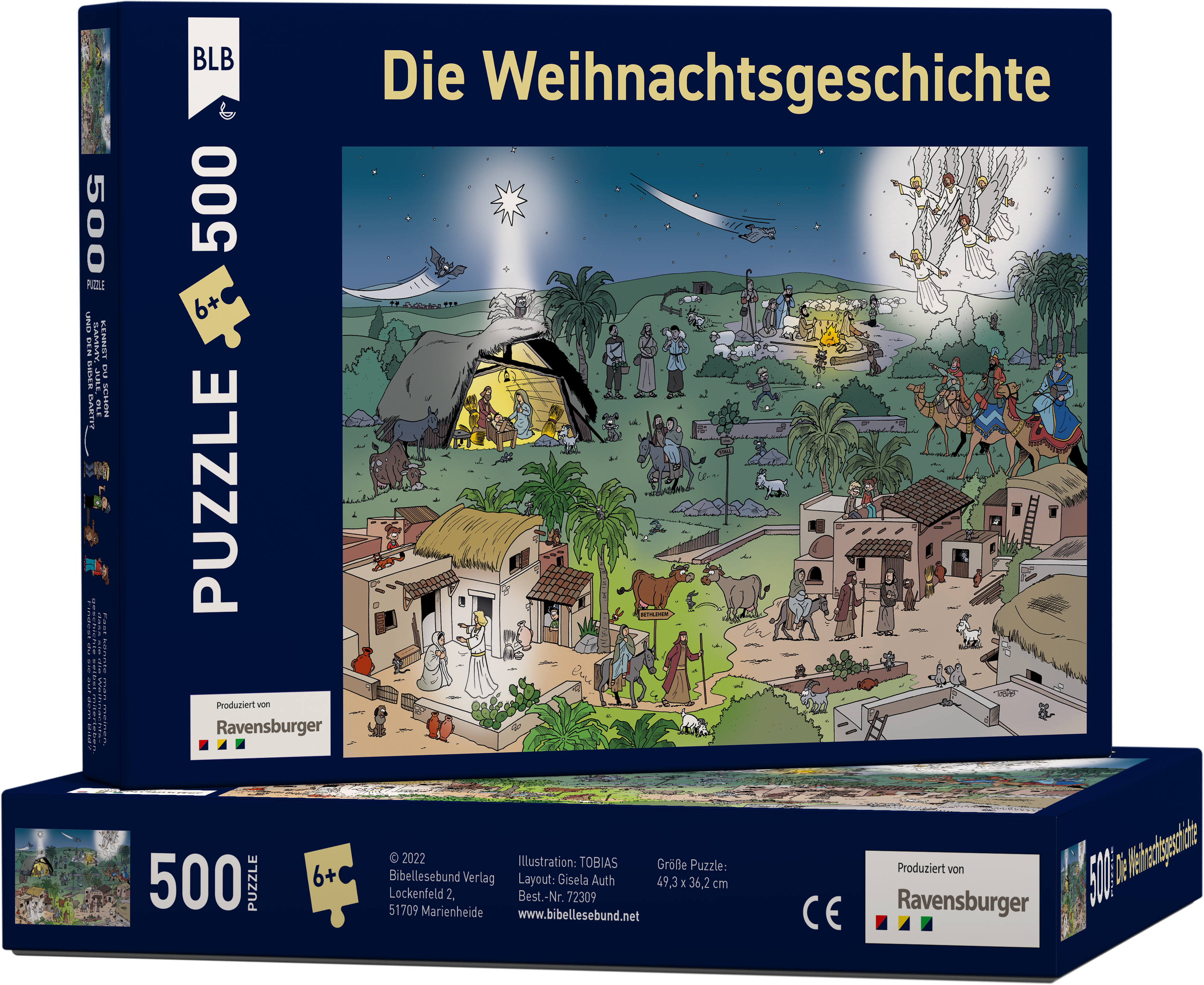 Super Puzzlespaß für gemeinsame Puzzle-Abende! Das schön gestaltete Wimmelbild zur Weihnachtsgeschichte lädt mit vielen liebevollen Details dazu ein, die Geburt von Jesus zu entdecken.