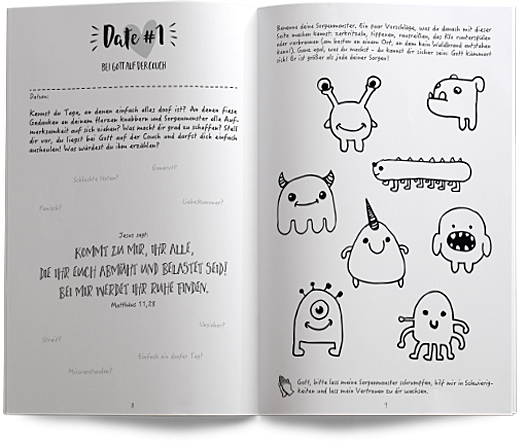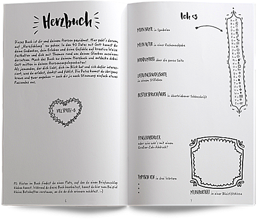 Mit diesem ansprechend gestalteten Buch können junge Mädchen etwas mehr von Gott entdecken. Die darin enthaltenen Dates liefern Impulse, das eigene Erleben, Denken und Fühlen auf kreative Weise festzuhalten und sich Gedanken über Glaube zu machen. Dadurch lernen junge Mädchen Gott besser kennen, entdecken ihn im Alltag und beziehen ihn in ihr Leben ein. Das Buch bietet viel Platz zum Kreativsein und Schreiben.