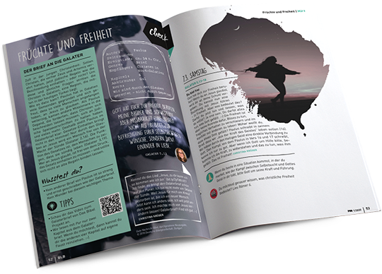 Hier gibt’s für jeden Tag eine Bibelstelle, Erklärungen und spannende Infos. Pur beleuchtet aber nicht nur die Hintergründe, sondern liefert auch motivierende Impulse für den Glauben im Alltag und lässt unterschiedliche Menschen zu Wort kommen. Das Herzstück der Zeitschrift, Bibellesen, wird außerdem von verschiedenen Extras begleitet – unter anderem von Artikeln zu biblischen Themen, Rätseln, Comics, Leserberichten und Interviews. Zudem macht das Design von Pur richtig Laune: auf jugendlich-frische und witzige Art und Weise ergänzt es die Inhalte und sorgt für Abwechslung.