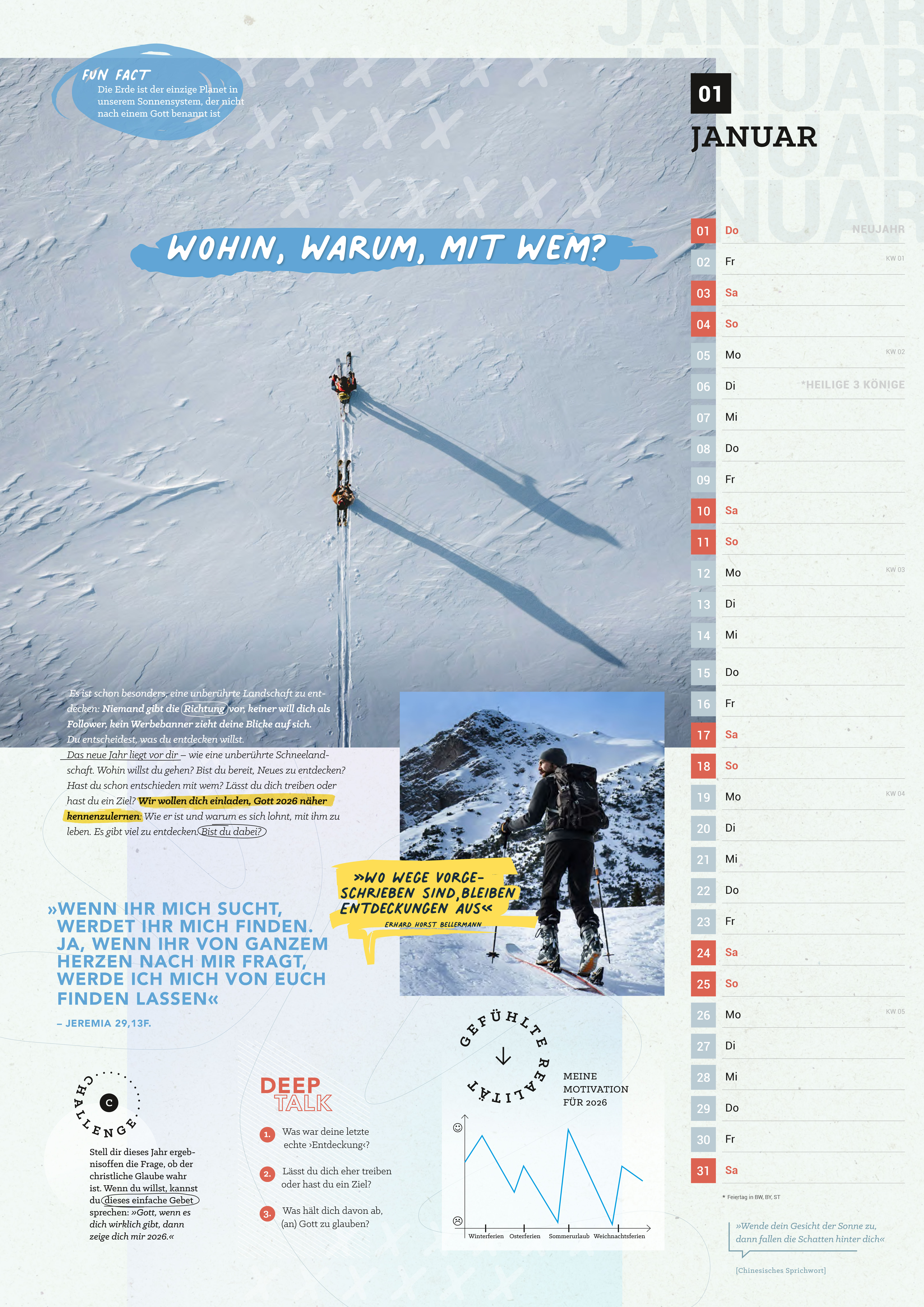 · Jeder Monat steht unter einer zentralen, herausfordernden Frage