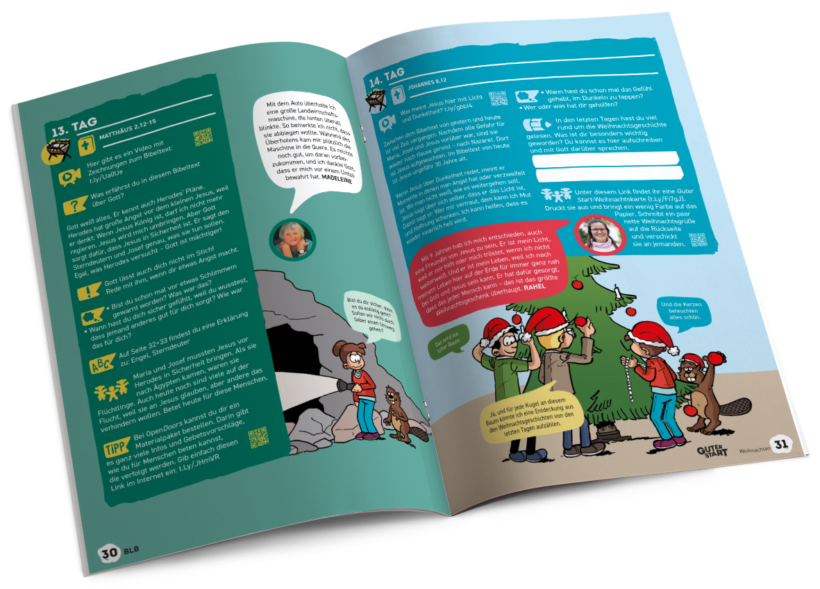 Bibellesen für Kinder ab 9 Jahren!In Guter Start wird täglich ein Bibeltext vorgeschlagen, den die Kinder selbst in der Bibel suchen und lesen können. Mit bunten Comics und Fotos, spannenden Rätseln und persönlichen Beispielen verschiedener Autoren gibt Guter Start Anregungen, die Bedeutung von Gottes Wort im eigenen Leben zu entdecken. In der Guter Start-Community bereichern ein Chat und ein Newsletter mit zusätzlichen Ideen, Tipps und Witzen den Austausch der Leser untereinander.Ab der Ausgabe 1/2025 im DIN A4 Format und zwar mit folgenden Vorteilen:- lesefreundliche Schriftart und größere Schrift- mehr Platz zum Ausfüllen und Eintragen- noch mehr Comics und Fotos- Erklärungen in leichterer Sprache. Jeder Satz in einer neuen Zeile- übersichtliche neue Gestaltung der InnenseitenQuartalshefte (4 Hefte pro Jahr)Geheftet, 21 x 29,7 cm (DIN A4), 72 Seiten 4-farbig Sie möchten ein Abo verschenken? Eine gute Idee, finden wir.Bitte klicken Sie oben die gewünschte Laufzeit an: Das reguläre Abo verlängert sich um jeweils ein weiteres Kalenderjahr, wenn es nicht bis zum 15. Oktober abbestellt wird. Das auf ein Jahr begrenzte Geschenk-Abo läuft automatisch nach 4 Quartalsheften aus.Teilen Sie uns bitte beim Bestellvorgang im Feld Bemerkungen die Adresse der Person mit, an die wir in Ihrem Auftrag die Hefte schicken sollen, oder benutzen Sie unterschiedliche Rechnungs- und Lieferadressen.